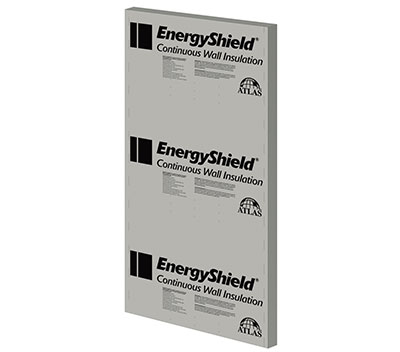 Atlas EnergyShield Wall insulation is composed of a closed cell polyisocyanurate (polyiso) foam core, faced with tri-laminate foil. The blowing agent used to produce the polyiso foam core does not contain any CFCs, HCFCs or HFCs. EnergyShield has zero Ozone Depletion Potential (ODP) and negligible Global Warming Potential (GWP). EnergyShield combines high R-value, durable foil facers, and water resistive attributes in a high performance rigid wall insulation. EnergyShield is suitable for a variety of continuous insulation (CI) applications.