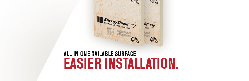 Atlas EnergyShield® Ply is a high performance thermal insulation board comprised of a closed cell polyisocyanurate foam core with patented coated glass-mat facers bonded to plywood.